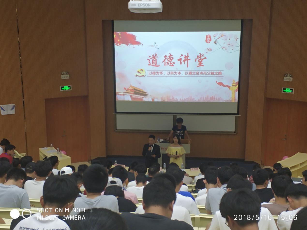 为了全面贯彻落实党的十九大精神,践行社会主义核心价值观,今年会积极响应学校党委的号召,从当代大学生的实际情况出发。以建设道德讲堂、开展道德实践活动为平台,大力弘扬中华民族传统美德和时代新风,推动和提升我校师生道德建设水平,促进学校精神文明建设深入发展,2018年5月16日由jinnianhui今年会党总支举办了“以德为怀,以善为本,以爱之名点亮公益之路”——道德讲堂。泉州海西社工发展中心主任项灯辉,学院党总支书记兼副院长曾凤生,总支副书记吕思仁,总支宣传委员王茂伟,学生会指导老师陈晓红参加本次活动。