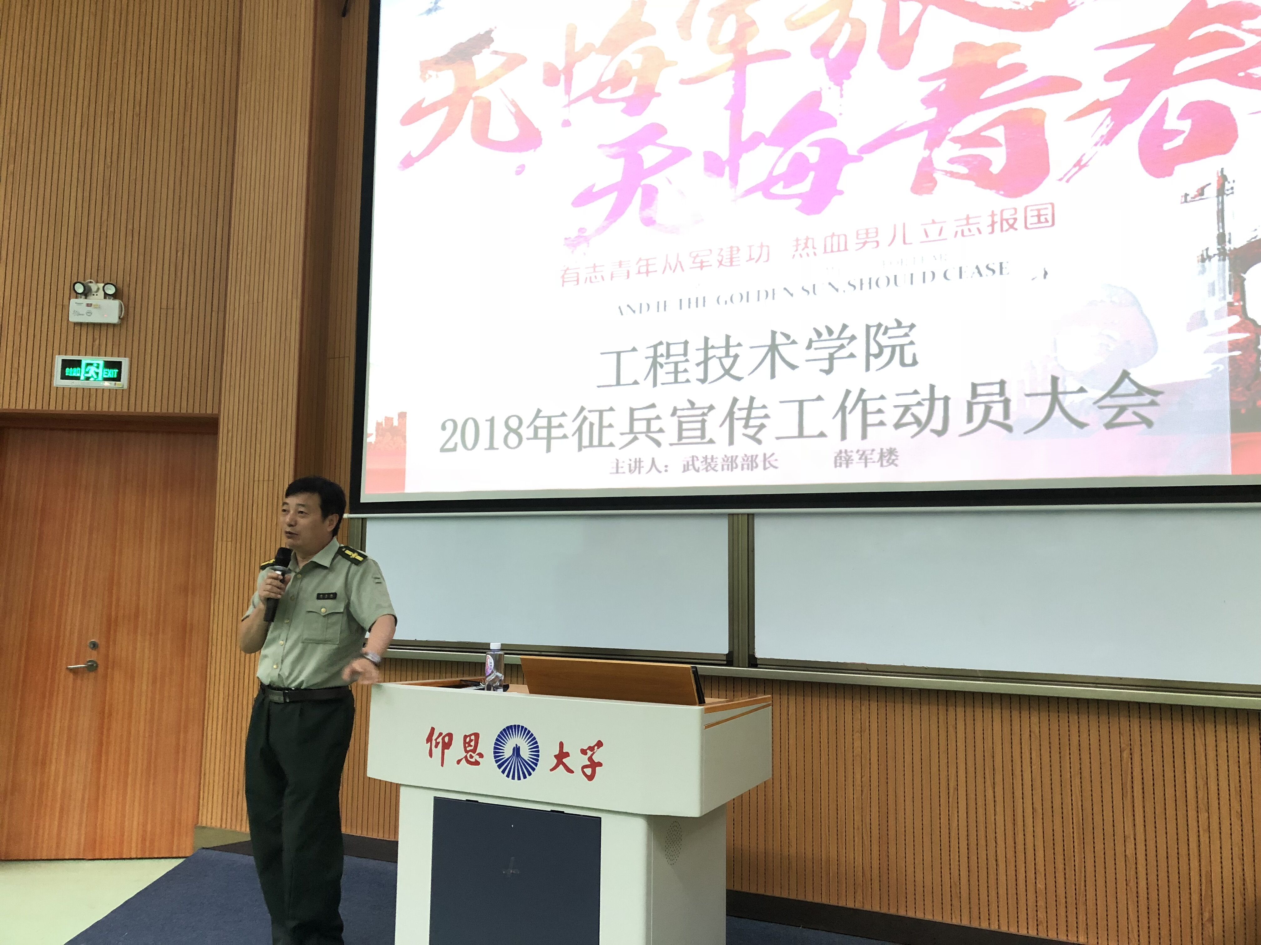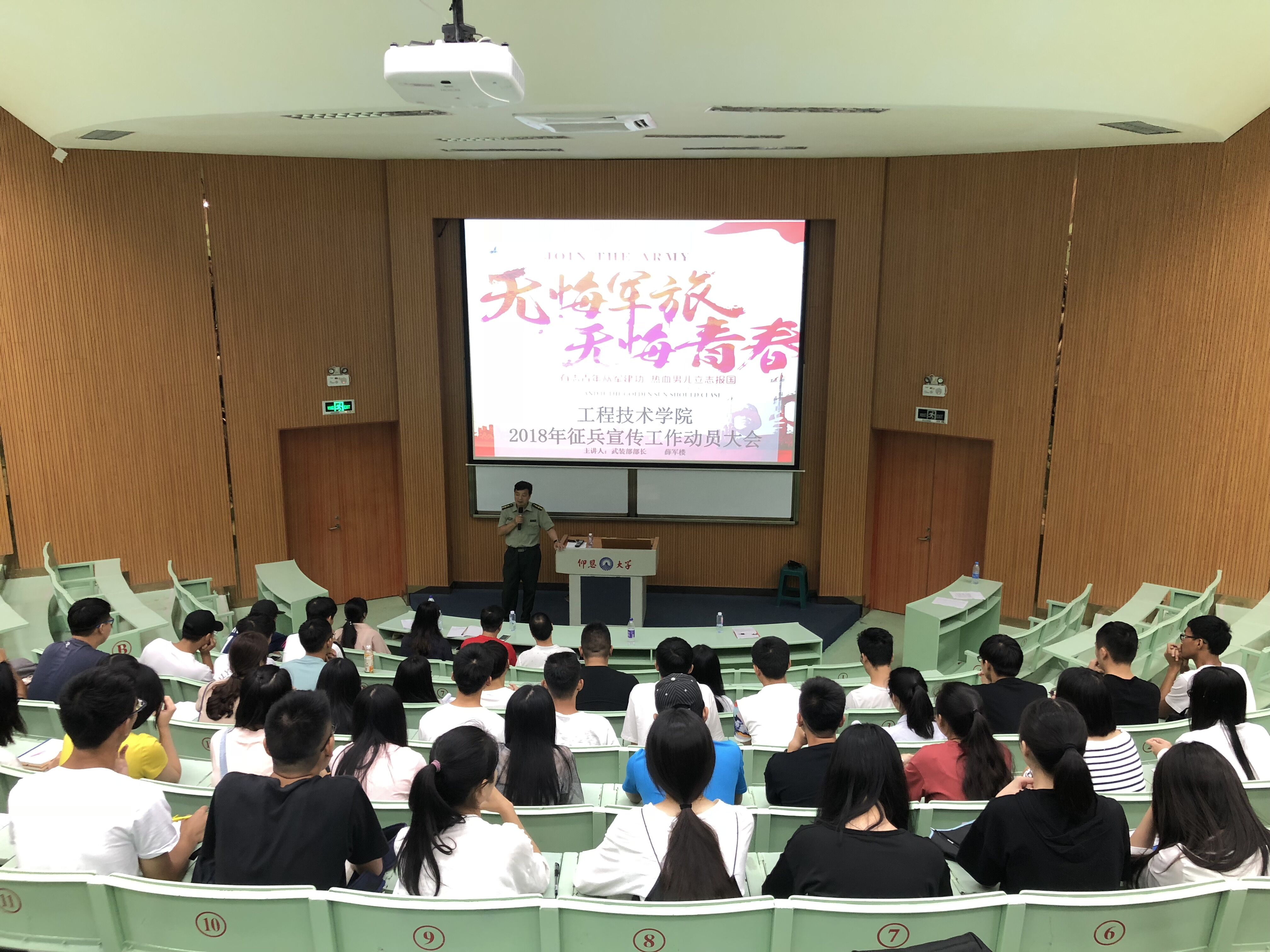 5月21日,jinnianhui今年会在旧区和昌乐之讲堂举办大学生征兵入伍政策宣传教育主题活动。本次讲座邀请校武装部部长薛军楼主讲,学院党总支书记兼副院长曾凤生,总支副书记吕思仁,全体辅导员,学院各年级学生干部,党员,以及团委学生会骨干参加本次讲座。