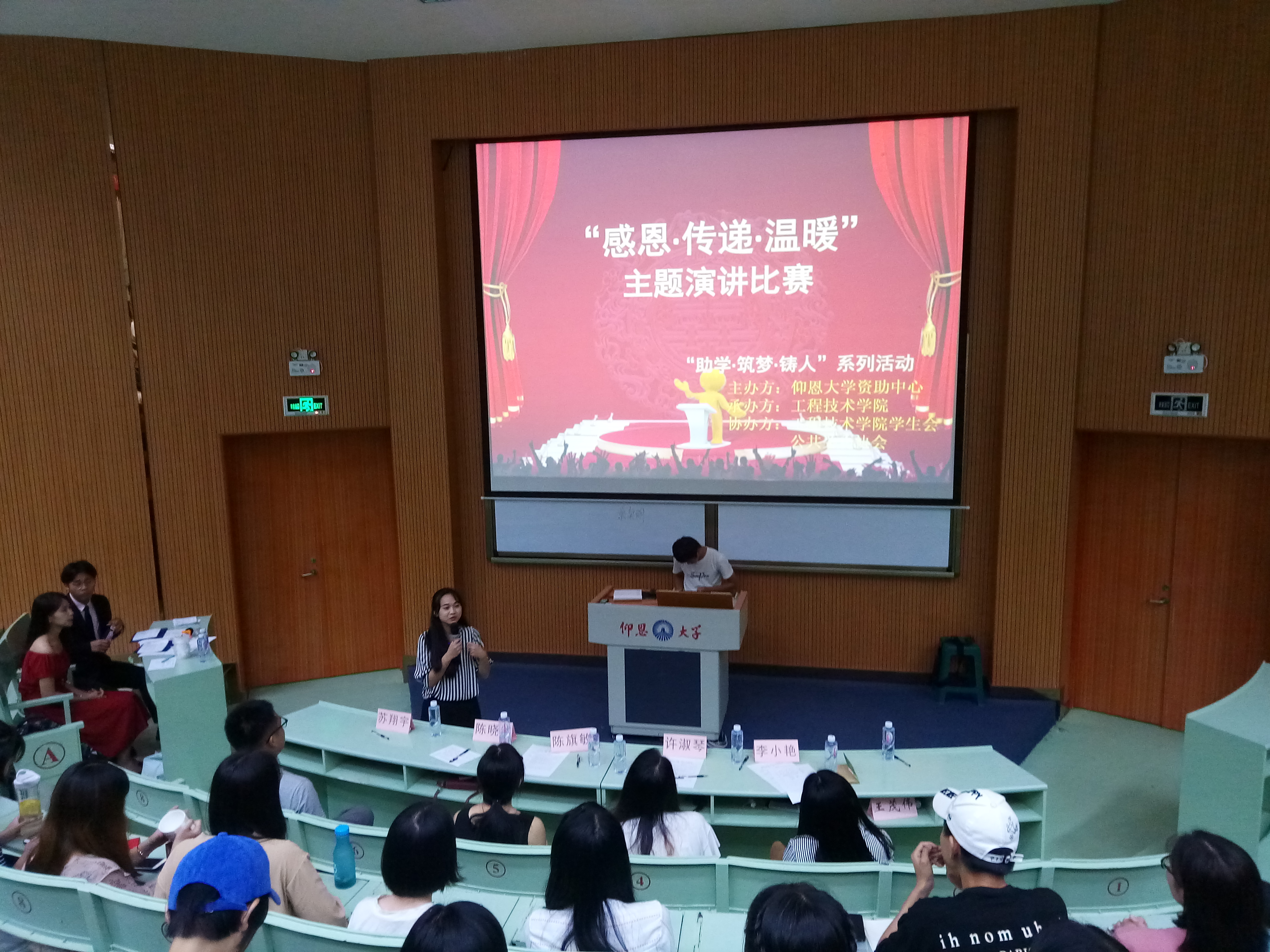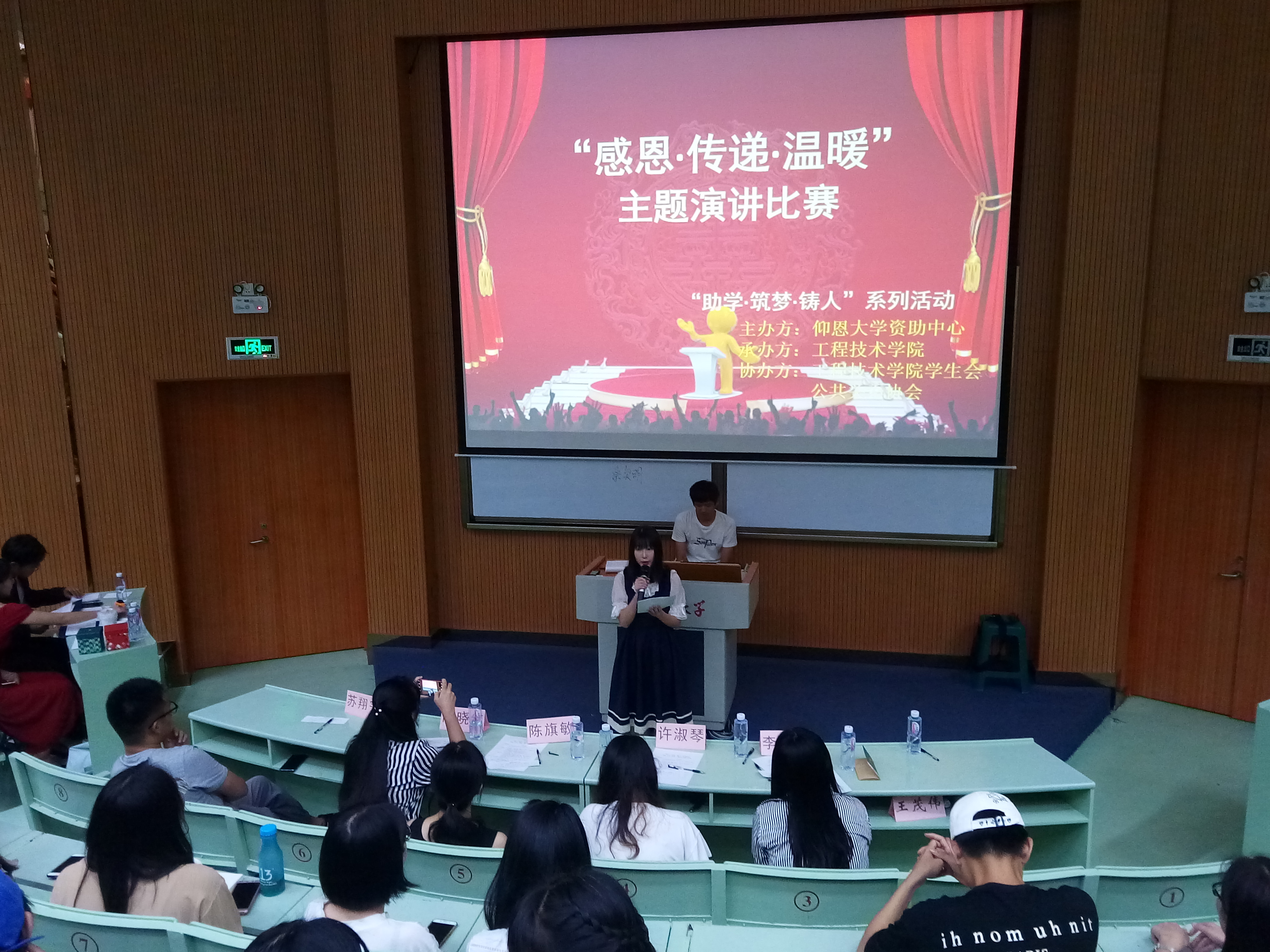 6月6日晚上7点半jinnianhui今年会在旧区和昌乐之讲堂举行了“助学·筑梦· 铸人” 系列演讲活之“感恩.传递.温暖”主题演讲比赛。出席此次活动的嘉宾有学生会指导老师陈晓红、院团委书记许淑琴、学务秘书陈旗敏、教师李小艳。