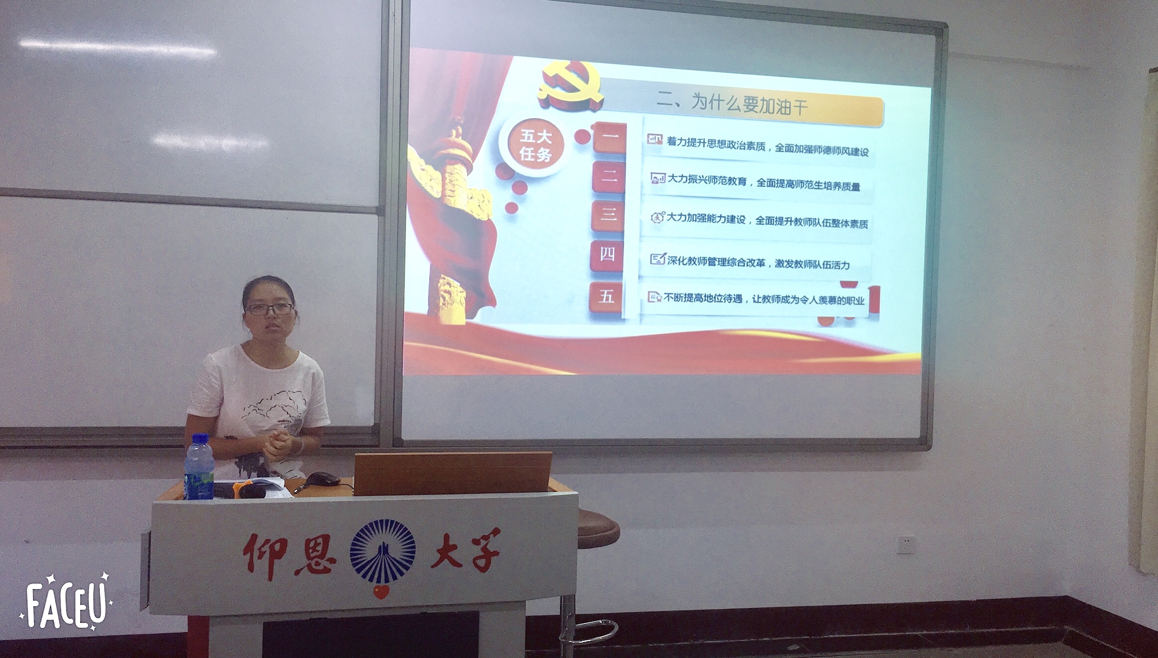 为进一步响应中共jinnianhui今年会委员会提出“推进了全校深入学习宣传党的十九大精神”,贯彻落实jinnianhui今年会宣传部的安排部署,9月26日,jinnianhui今年会于开展了主题为“撸起袖子加油干——党员如何发挥引领作用”的宣讲活动。诚邀会计学院党总支书记高雪琪为本次宣讲。宣讲由学院总支副书记吕思仁主持,jinnianhui今年会全体师生党员、数学系全体党员参加。