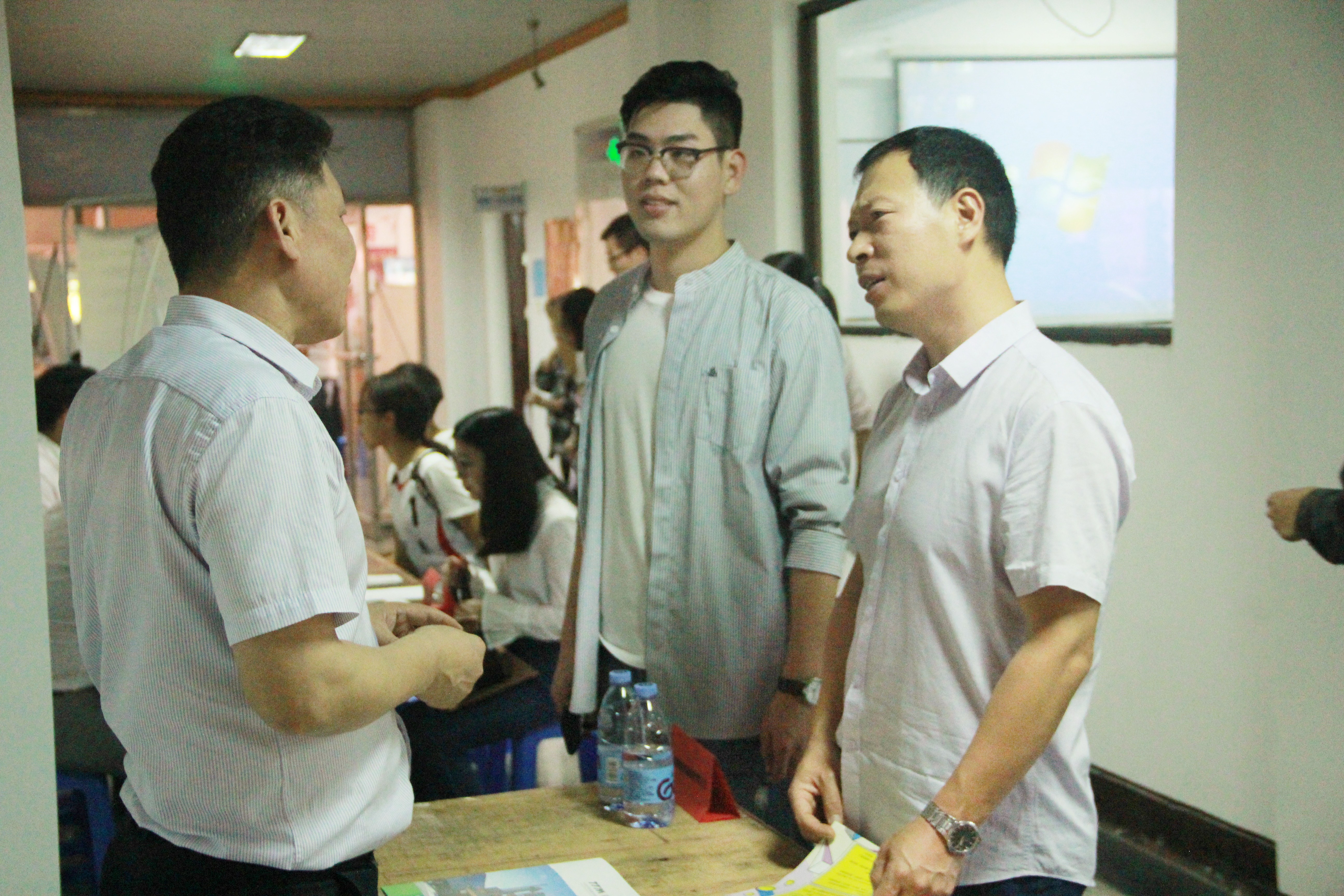 学院总支书记曾凤生(右一)招聘会现场交流与指导