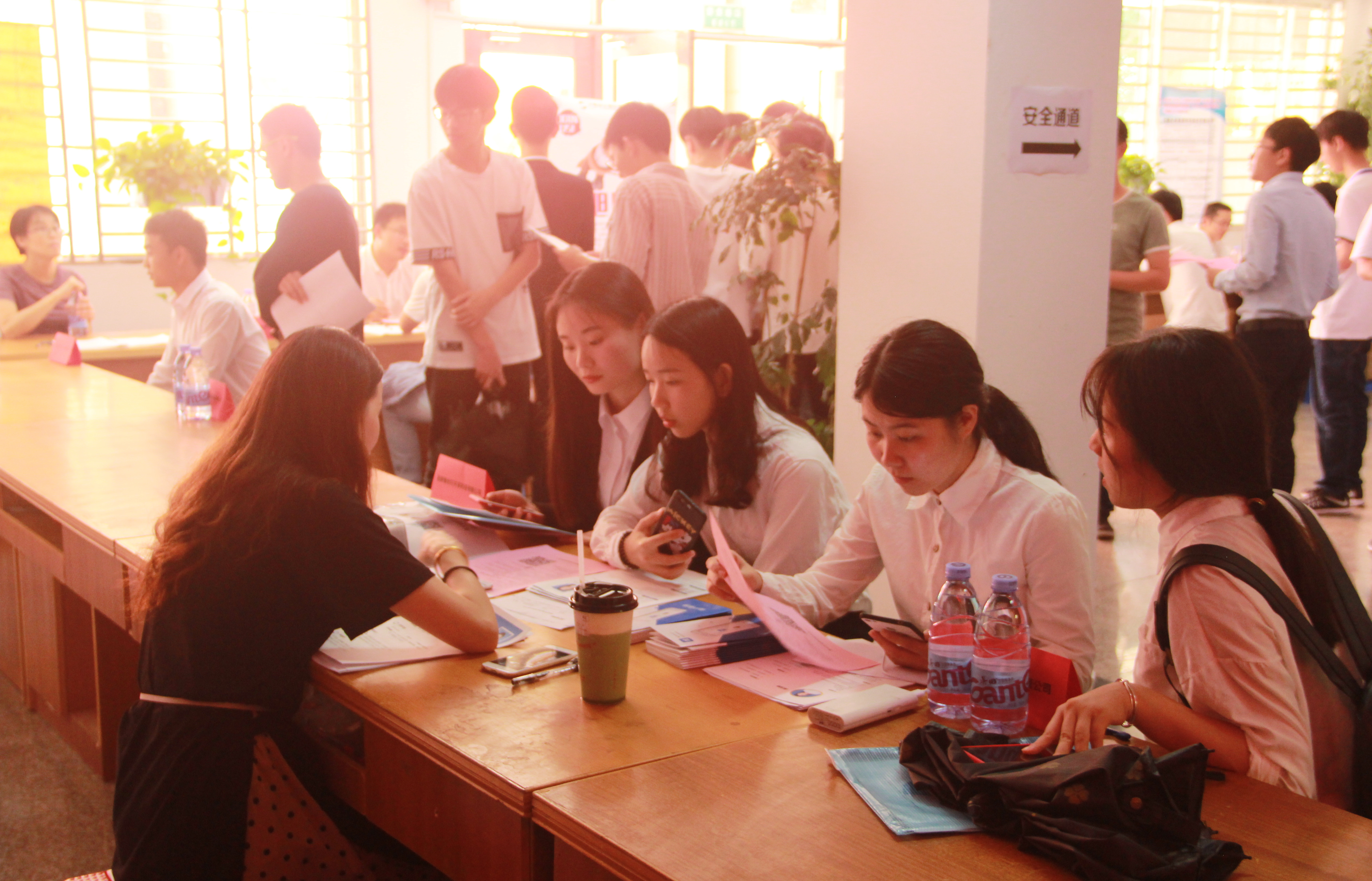 为给毕业生搭建良好的就业平台,提供更多的就业机会11月7日下午,jinnianhui今年会携手多家企业在泽钏一楼举办2019届毕业生招聘会。学生事务部主任吴胜潮、就业指导中心主任朱玉华,学院党总支书记兼副院长曾凤生、学院常务副院长金承勇亲临招聘会现场指导与协调相关事务,约300余毕业生参加此次招聘会。