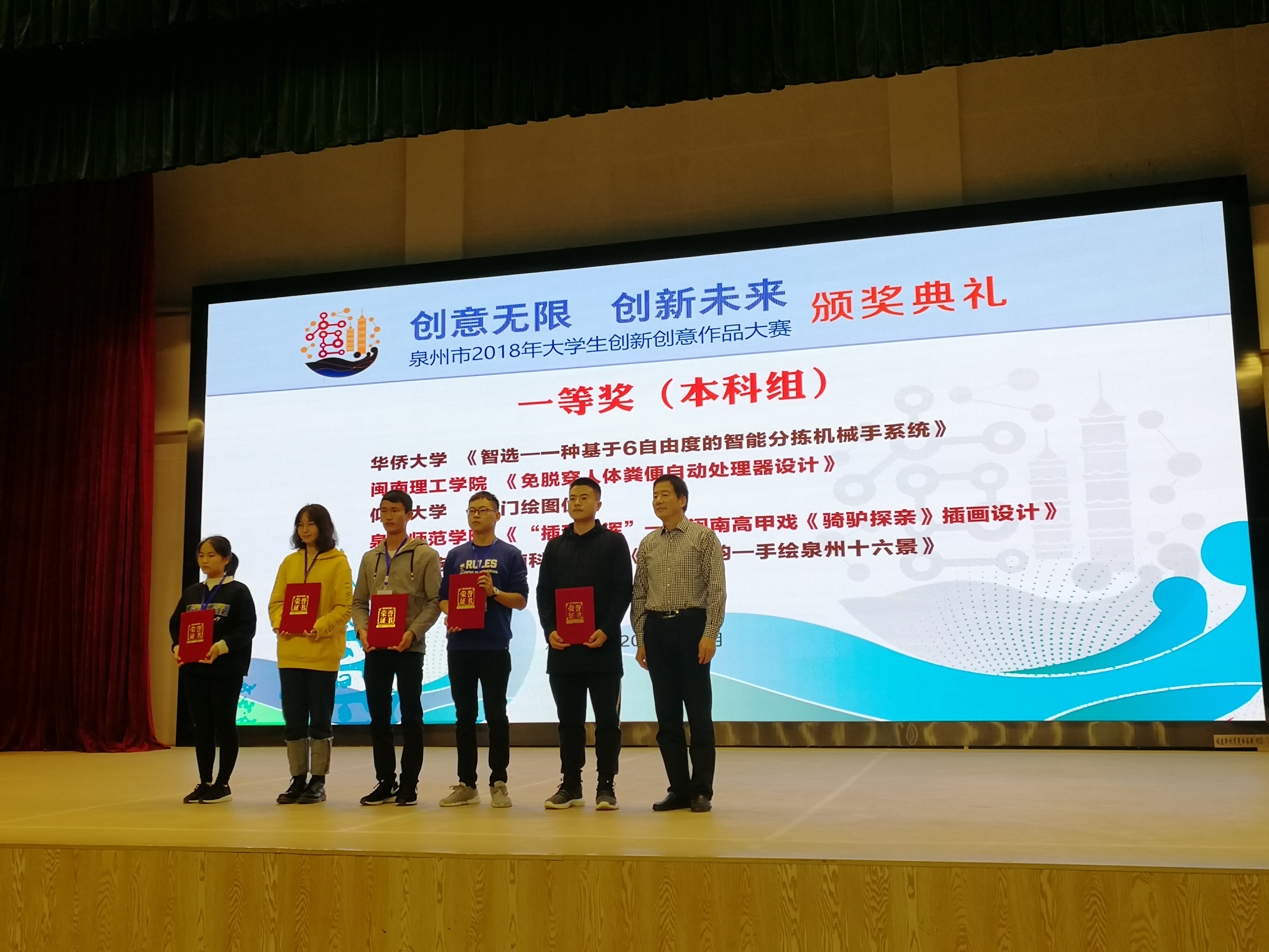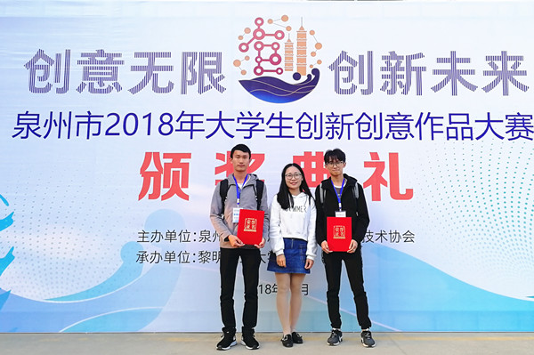 11月23日,泉州市2018年大学生创新创意作品大赛决赛在黎明职业大学举行。今年会报送的作品《龙门绘图仪》荣获A组技术革新类一等奖,《奇幻之旅》荣获A组创意设计类二等奖。