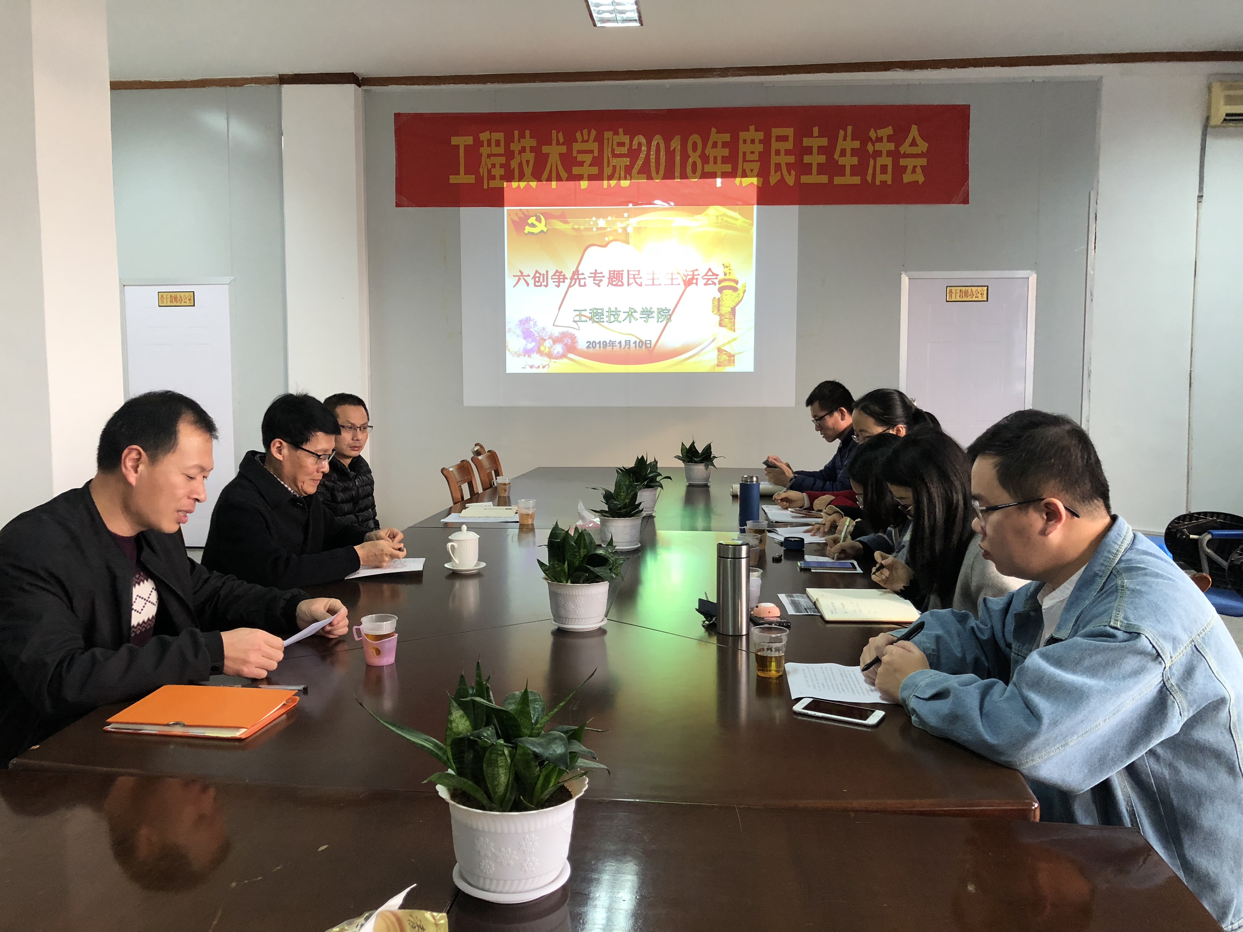按照校党委统一部署,2019年1月10日今年会在泽钏楼会议室召开了“六创争先”专题民主生活会。会议紧紧围绕解决“四风”问题,结合学院实际,针对查摆出的突出问题,深刻剖析原因,开展认真严肃的批评与自我批评。会议邀请校党委庄哲峰书记到会指导,会议由学院党总支书记曾凤生主持,学院全体领导班子及中层干部参加会议。