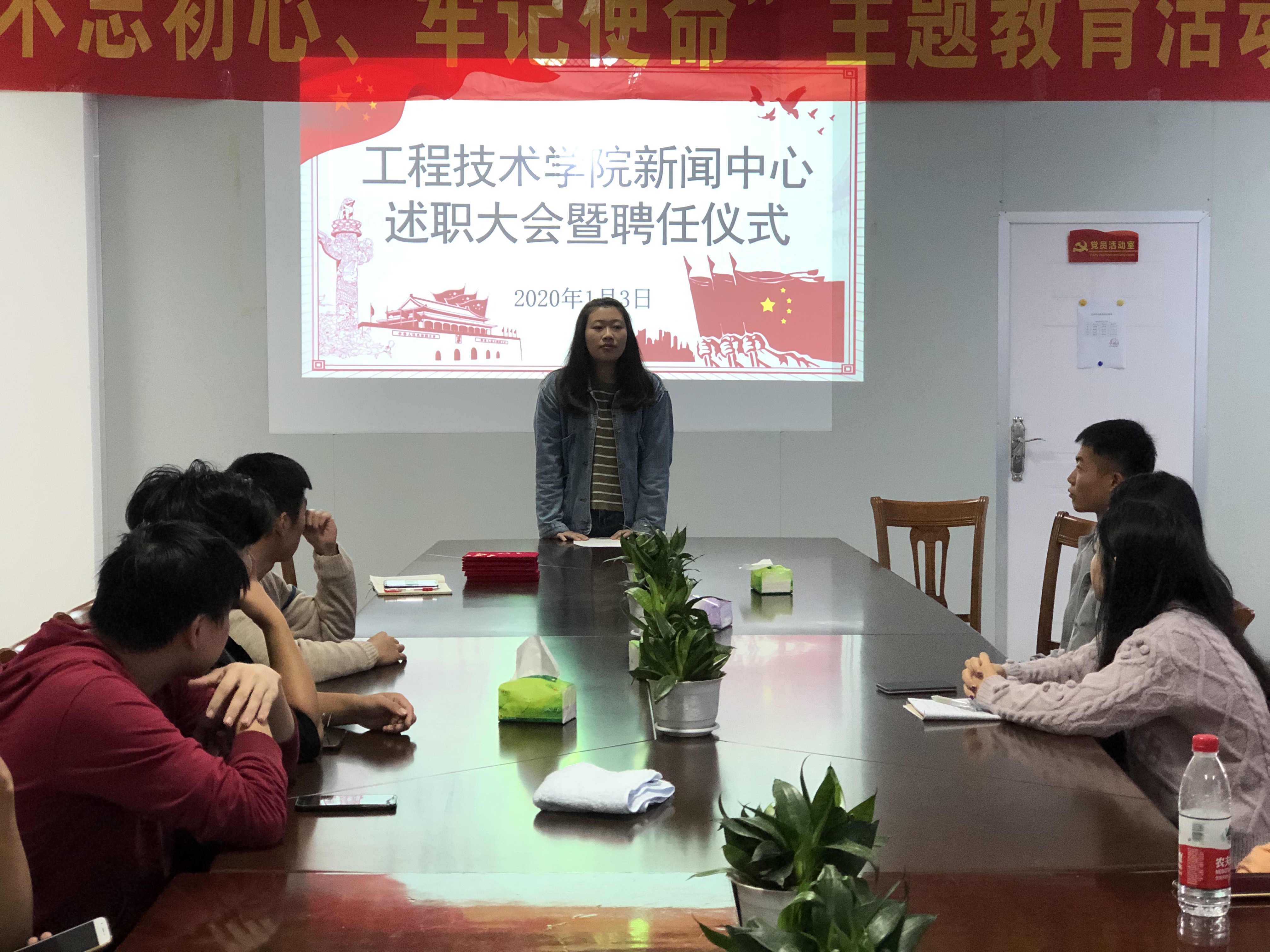 为进一步提高今年会新闻宣传骨干的工作能力和积极性,总结经验、表彰先进,1月3日,2019年度新闻宣传队伍述职大会暨聘任仪式在泽钏四楼会议室顺利举行。学院党总支副书记吕思仁、新闻中心指导老师王茂伟、新闻中心干部参加了本次大会。