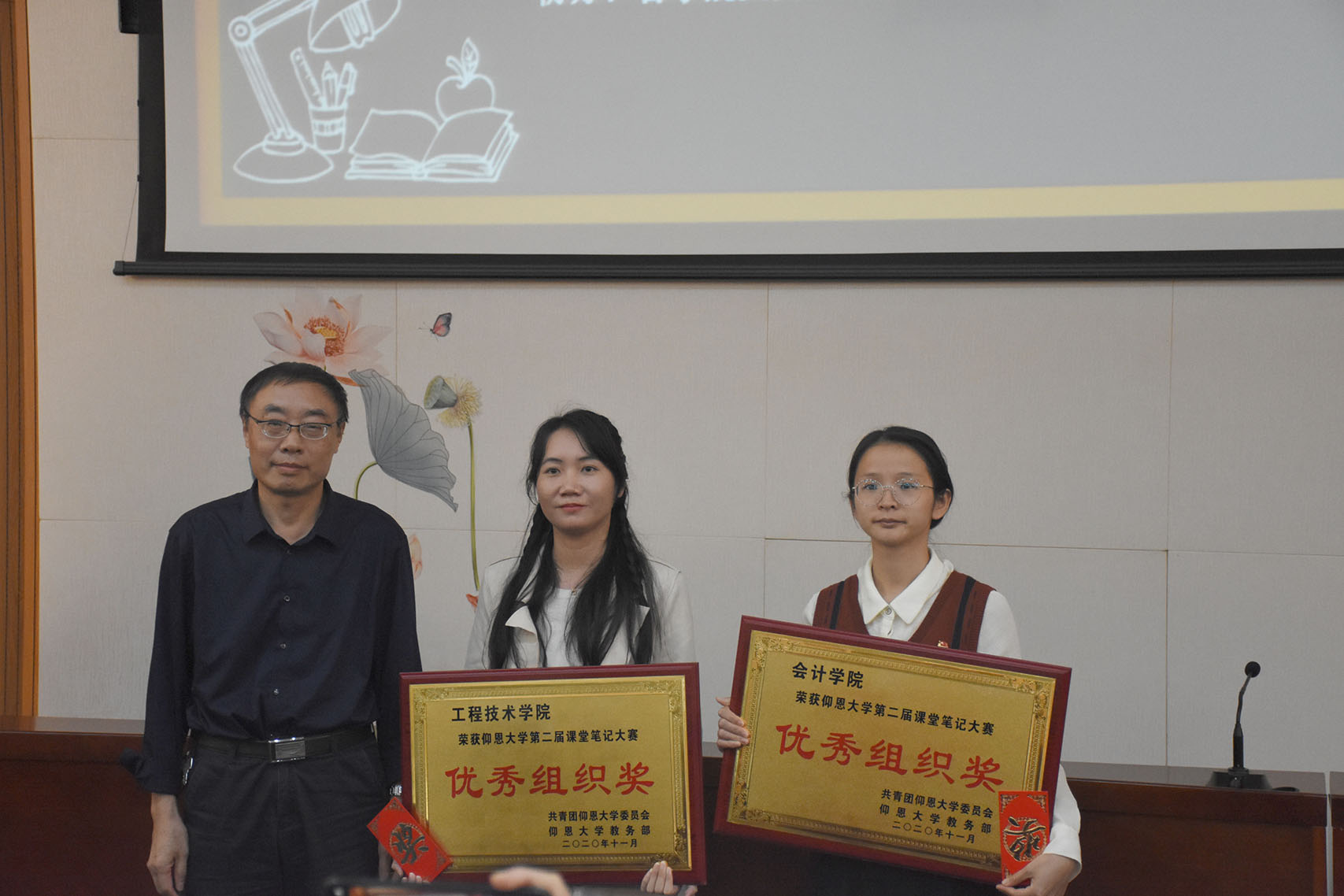 11月4日下午,由校团委和教务部主办、各学院团委协办的第二届课堂笔记大赛决赛在第一教学区多功能报告厅举行。今年会何心茹获得一等奖;黄慧娟获得三等奖;林芝桂、李昕怡、郑幼婷、曾芸获得优秀奖;学院获得优秀组织奖。