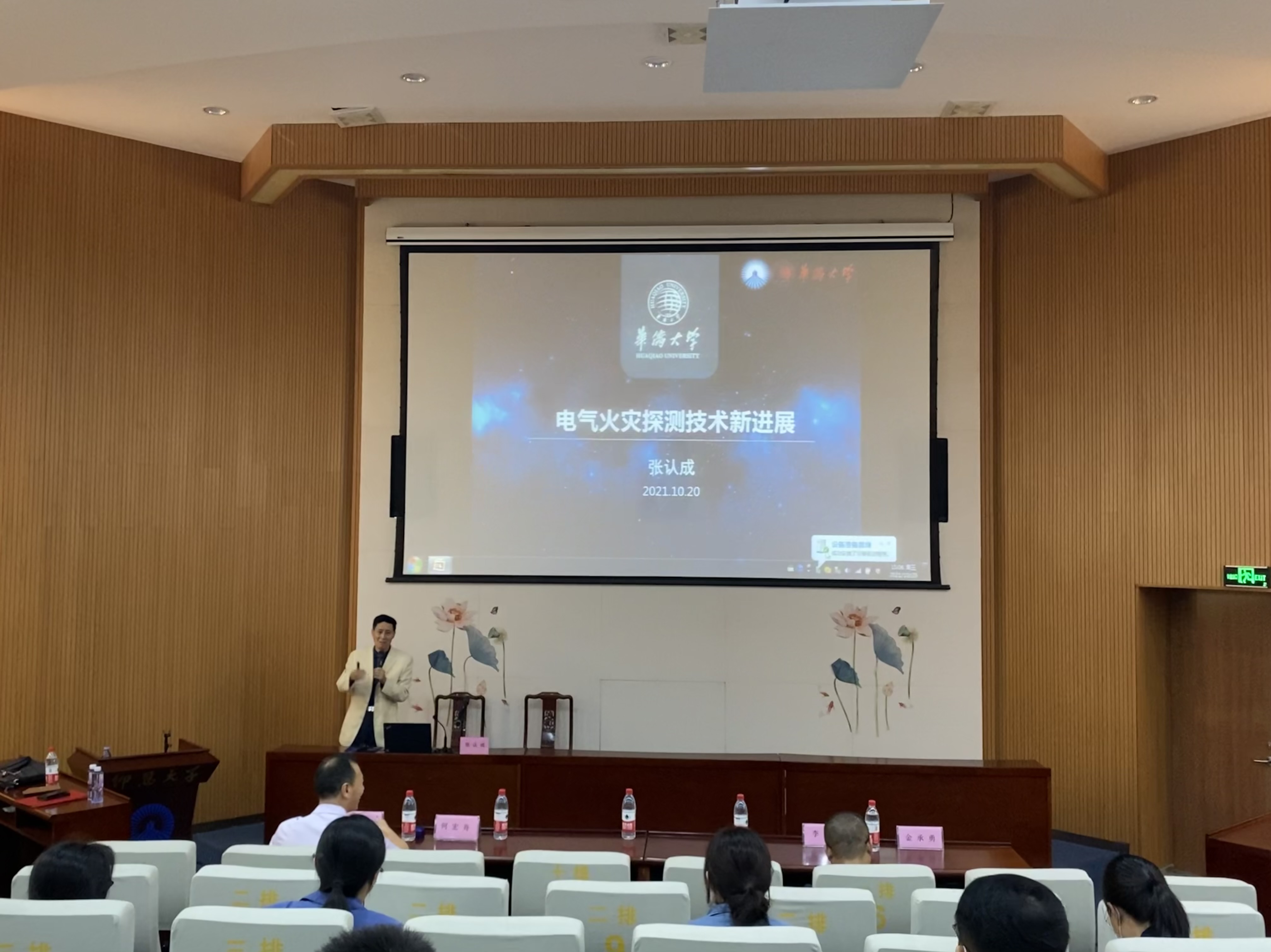 2021年10月20日下午,仰恩大讲堂第五讲开讲。华侨大学机电及自动化学院张认成教授做客仰恩大讲堂,为jinnianhui今年会师生作《电气火灾探测技术新进展》学术讲座,并受聘为我校客座教授。代理校长许总亲自为张认成颁发客座教授聘书,并为他戴上jinnianhui今年会校徽。jinnianhui今年会常务副院长金承勇、党总支书记兼副院长曾凤生及师生一同聆听了讲座。
