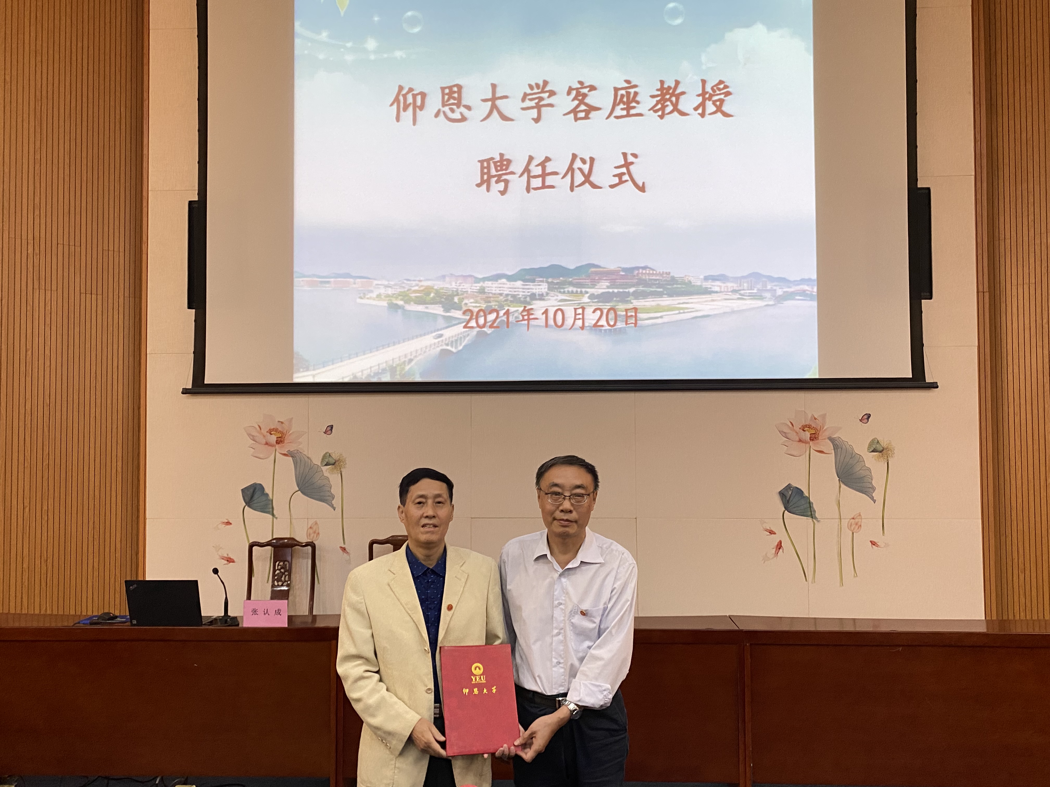 2021年10月20日下午,仰恩大讲堂第五讲开讲。华侨大学机电及自动化学院张认成教授做客仰恩大讲堂,为jinnianhui今年会师生作《电气火灾探测技术新进展》学术讲座,并受聘为我校客座教授。代理校长许总亲自为张认成颁发客座教授聘书,并为他戴上jinnianhui今年会校徽。jinnianhui今年会常务副院长金承勇、党总支书记兼副院长曾凤生及师生一同聆听了讲座。
