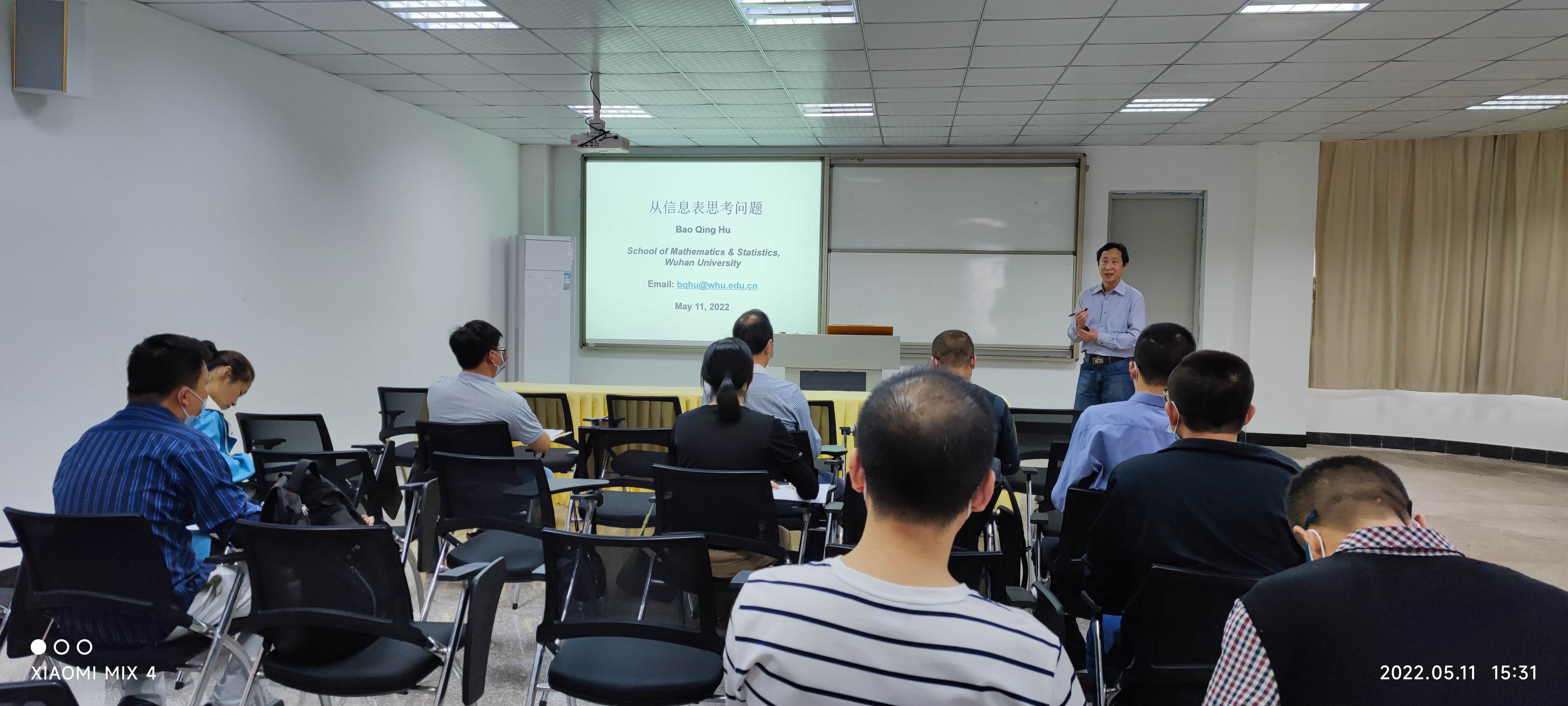 5月11日下午,今年会胡宝清教授在新区图书馆学术报告厅开展题为《从信息表思考问题》的学术讲座,计算机科学与技术系教师与数学系教师到场聆听。