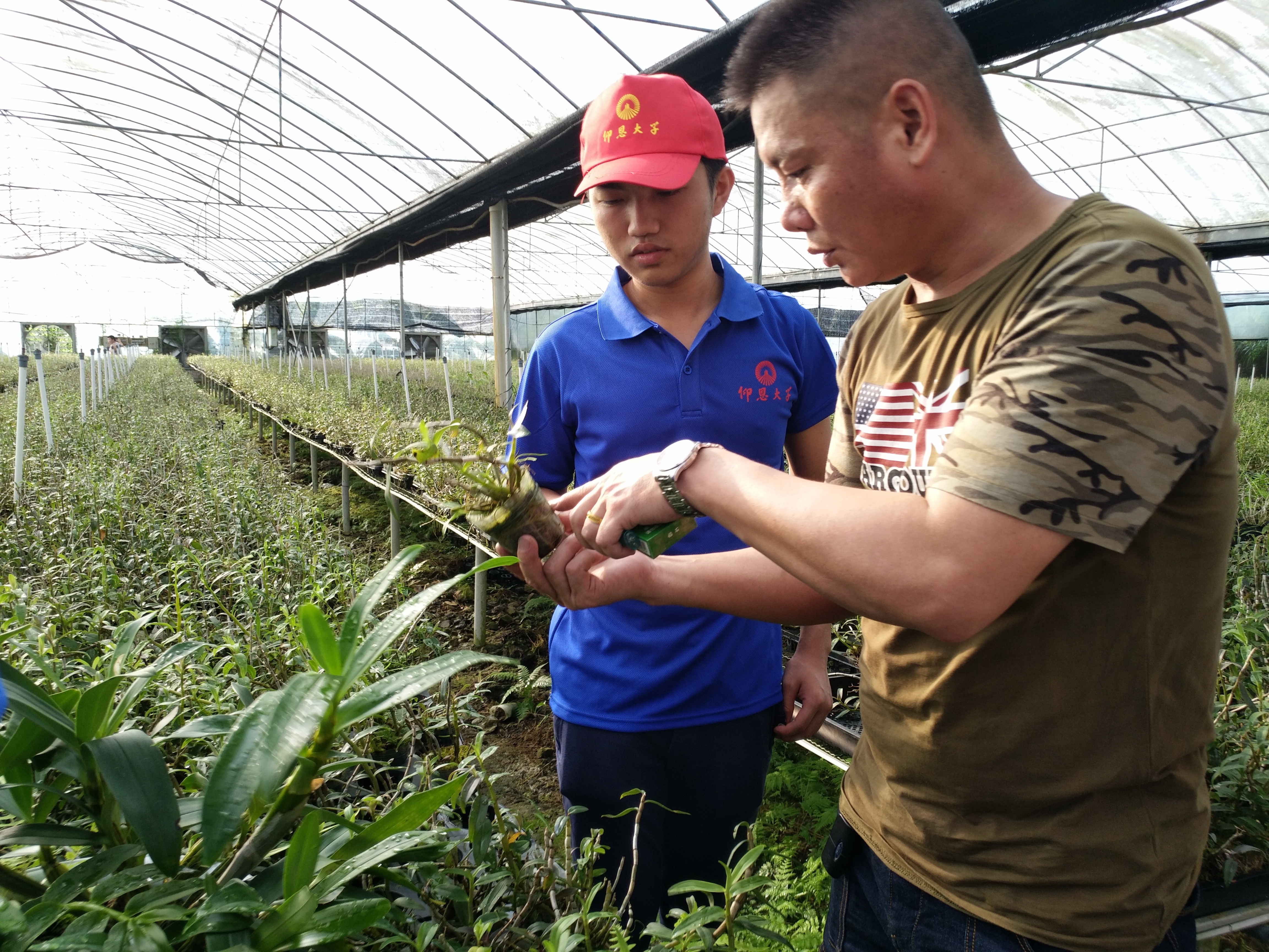 下午,余村长带领实践队来到当地精准扶贫产业:春馨园-铁皮石斛厂。村长一路上跟队员们介绍铁皮石斛药用价值,让同学们对铁皮石斛产生极大兴趣。到了厂地我们实践队队长与厂长余泽源就铁皮石斛产业发展展开了讨论,主要有生产铁皮石斛注意事项、该地为铁皮石斛生产提供的优势以及药用价值等。厂长积极回复同学们问题并亲自为同学们榨一壶铁皮石斛汁,品尝了后,队员们在余厂长的带领下参观了铁皮石斛产业基地,并动手为铁皮石斛除草。