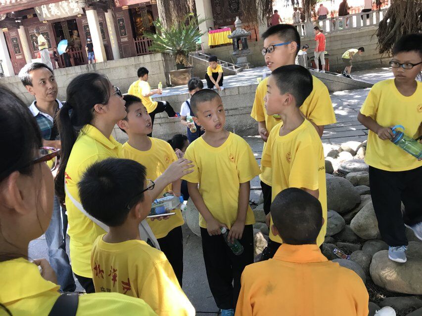 7月12日,银河系暑期实践队抵达位于清源山东麓南少林寺,我们遇到来自附近的小学生到寺培训,由武僧对小学生们进行体能训练和武术方面的指导。在他们休息之余,我们了解到,现在不少学生暑假会报一些兴趣班,而少林寺有着悠久的博大精深的武术文化,这使得家长们让不少对武术感兴趣的孩子到少林寺锻炼学习。