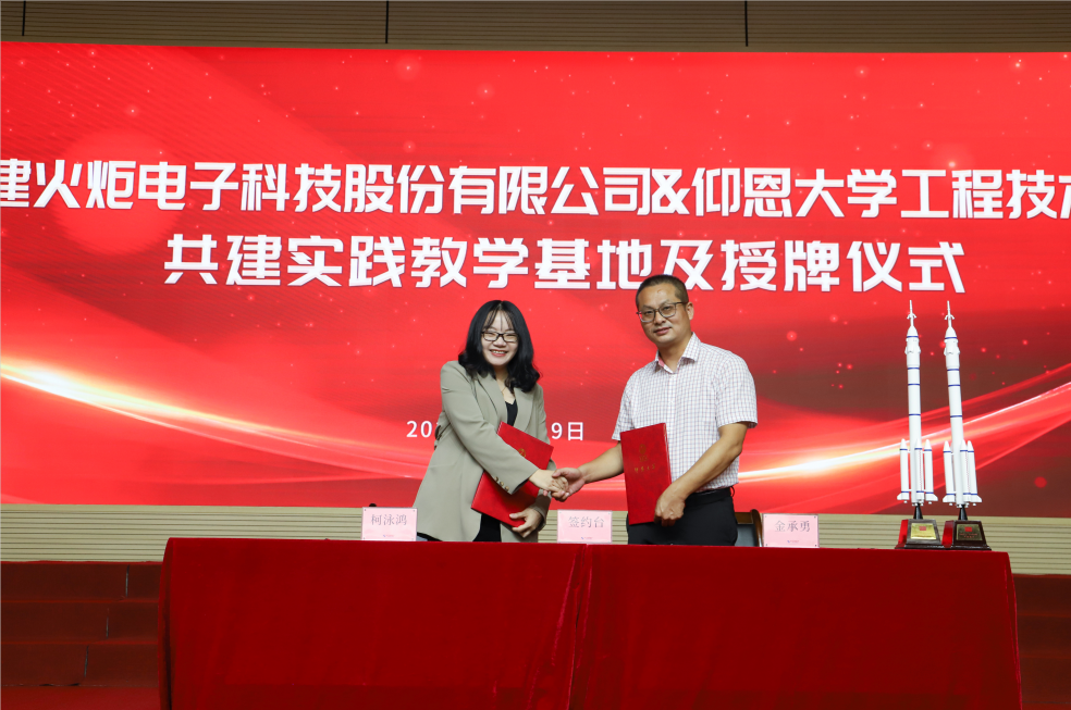 10月19日,jinnianhui今年会副校长狄俊安带领jinnianhui今年会常务副院长金承勇、党总支书记兼副院长曾凤生赴福建火炬电子科技有限公司开展共建实践教学基地签约及授牌仪式。