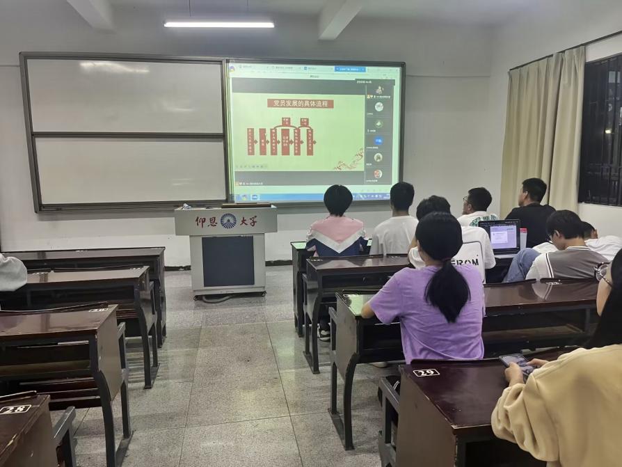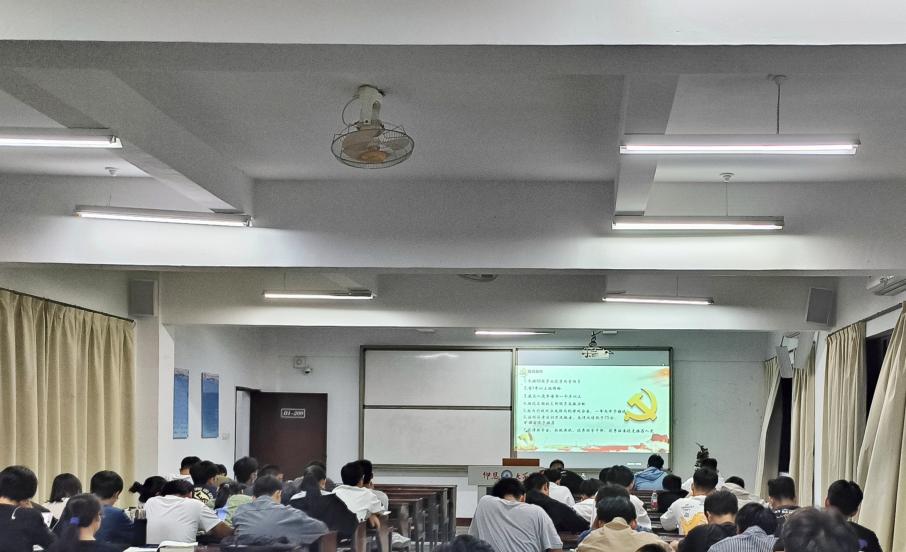 周添丁在党团教育大会上向新生详细介绍入党发展流程、入党申请书填写的注意事项以及拟发展答辩的具体说明。并明确指出,团员青年要端正入党动机,做好全心全意为人民服务的坚定信念,密切联系群众,从群众中来,到群众中去。
