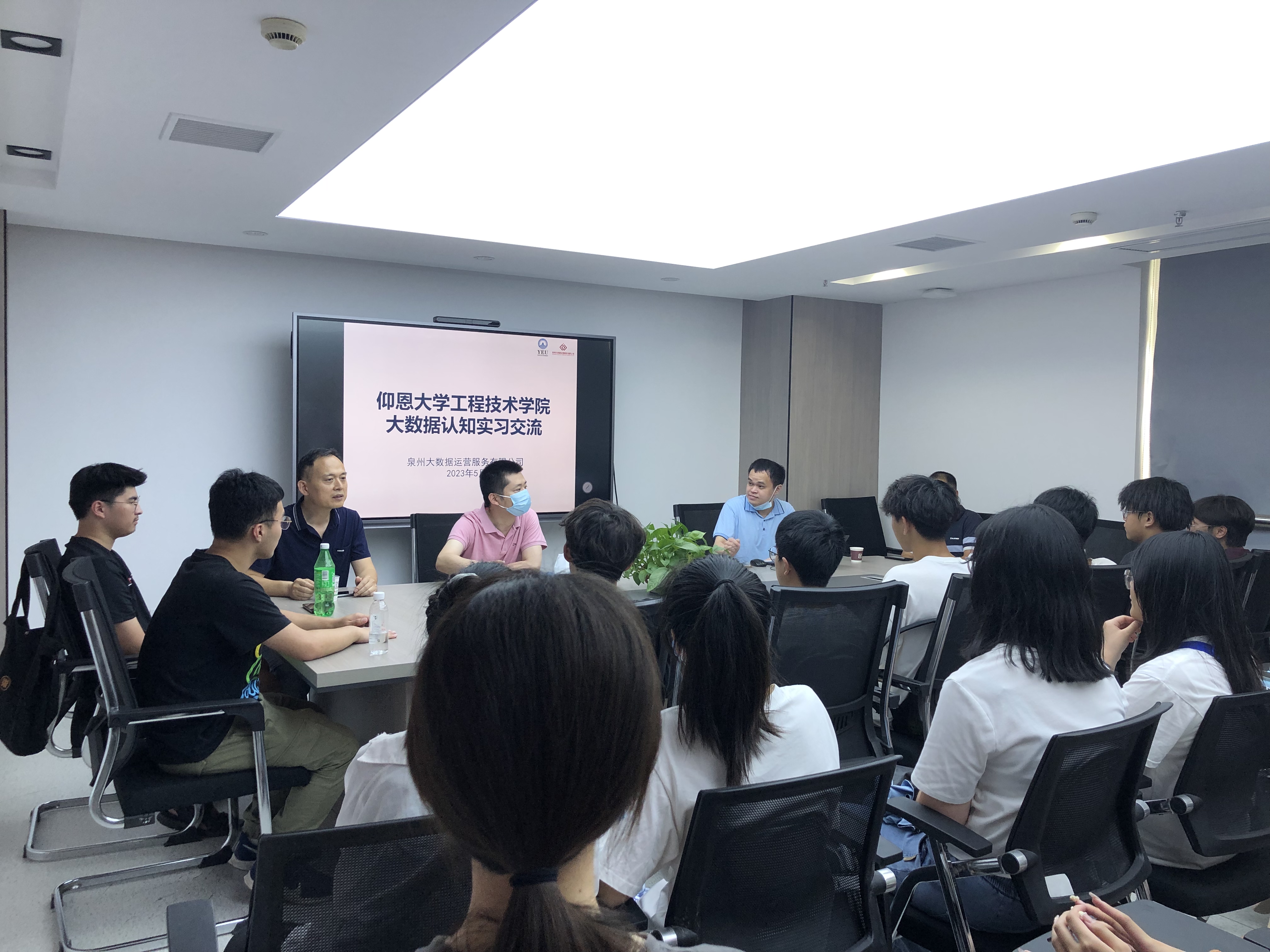 在泉州大数据运营服务有限公司,副总经理黄恒介绍了公司的发展历程、经营范围和目前正在进行的项目及在数据生态建设方面取得的成果等。技术部负责人柯杜芹经理为老师和同学们介绍了大数据治理的相关技术、处理流程,并与同学们进行了深入交流。