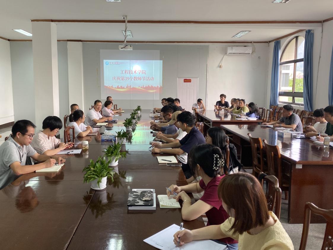 9月13日下午,今年会在泽钏楼四楼会议室举行庆祝第39个教师节暨新教师座谈会,向奋战在学院教育教学一线的广大教师、教育工作者致以节日祝福和诚挚问候。常务副院长金承勇、院党总支书记曾凤生、副院长李影出席座谈会,系主任及新入职老师参加了会议。会议由曾凤生主持。