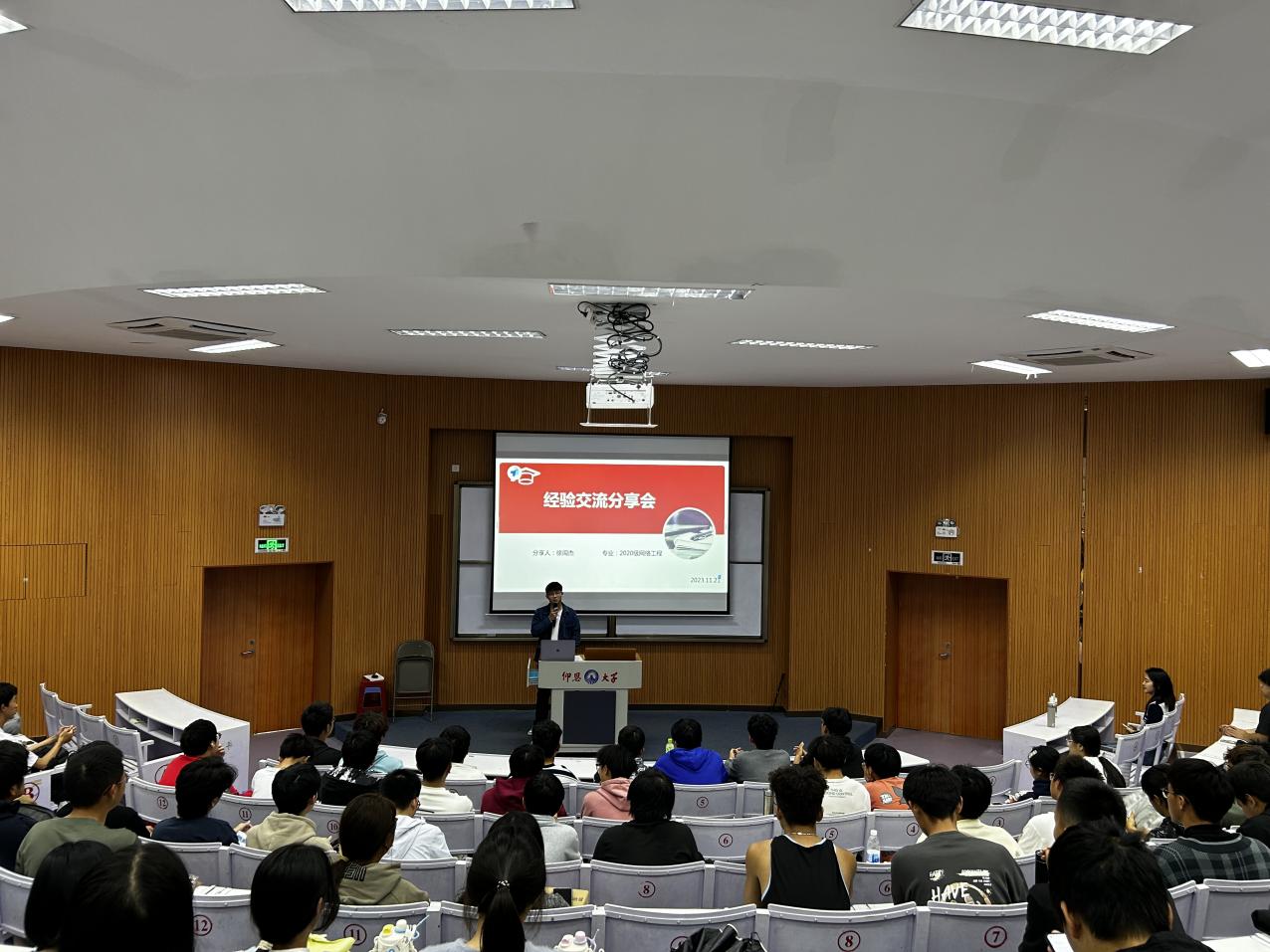 11月27日下午,今年会在第三教学区和昌教学楼博雅讲堂举办学习经验分享会。本次分享会邀请国家奖学金获得者2020级网络工程专业徐闽杰同学进行分享。分享会由辅导员陈慧敏主持,辅导员刘炫圻出席分享会,2022级网络工程专业、2023级网络工程专业、人工智能专业学生到场聆听。