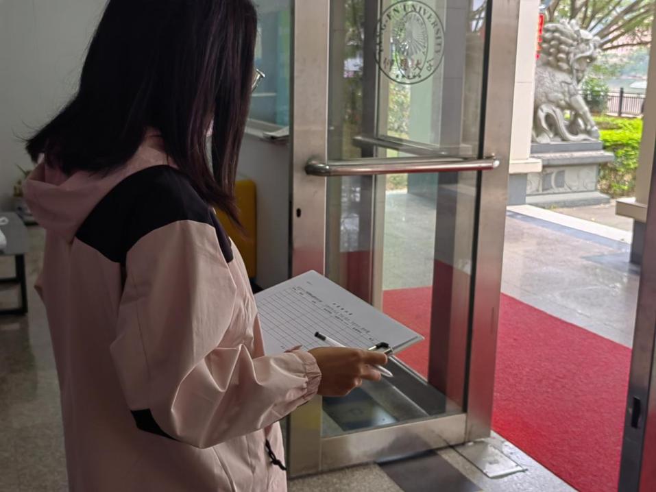 11月29日,支部入党积极分子在泽钏楼进行创建文明学院校园督查工作,检查学生上课迟到、早退、穿拖鞋等不良文明行为,营造良好的学习风气,为优化校园育人环境贡献力量。