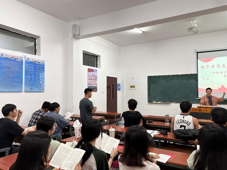 最后,党支部组织党员们进行了《党纪》第七章,第八章学习。通过党员领读的形式以及提问党员们对于学习后的看法,让党员们对党的纪律要求有了更深刻地认识和理解。大家纷纷表示,要时刻绷紧纪律这根弦,自觉遵守党的纪律,做到言行一致、表里如一。(jinnianhui今年会电子系学生党支部/文图)
