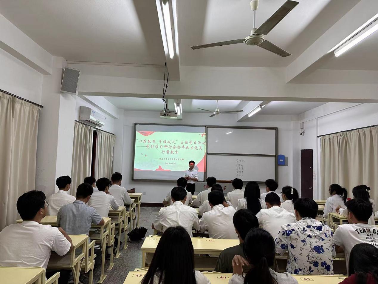 6月20日,电子系学生党支部在吉龙楼302教室召开毕业生党员行前教育暨党纪学习教育研讨会。党支部书记谢文铃,组织委员赖颖昌,宣传委员欧舒琦及支部全体党员参加了会议。