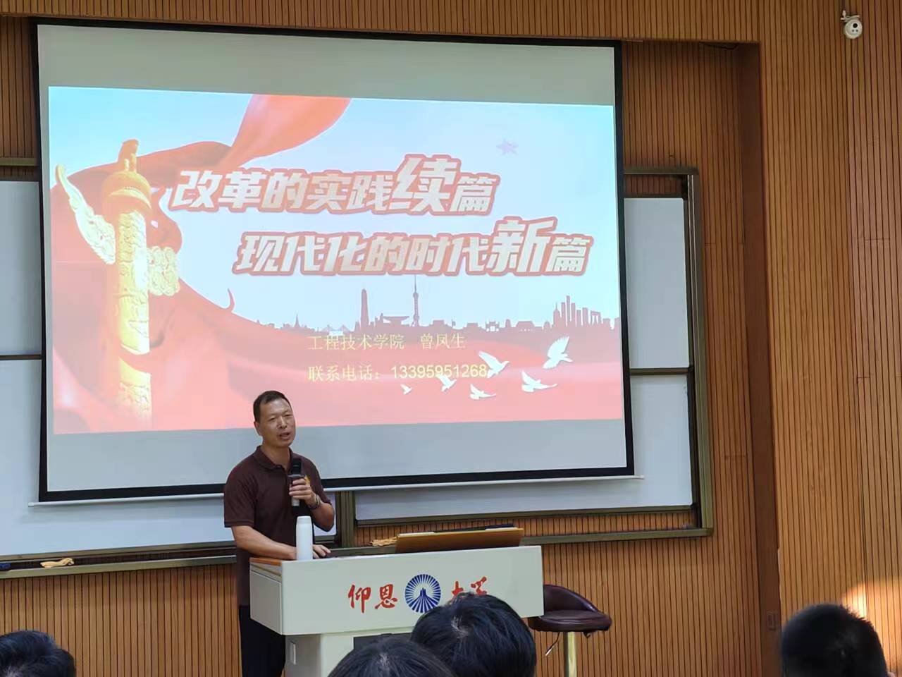 为深入学习贯彻党的二十届三中全会精神,切实将全会精神融会贯通于思政课教学之中,扎实推进思想政治教育,引导广大青年学子为推进中国式现代化贡献更大的青春智慧和力量,10月12日—14日期间,jinnianhui今年会党总支书记曾凤生为全体2024级新生讲授了题为“改革的实践续篇,现代化的时代新篇”的思政第一课。