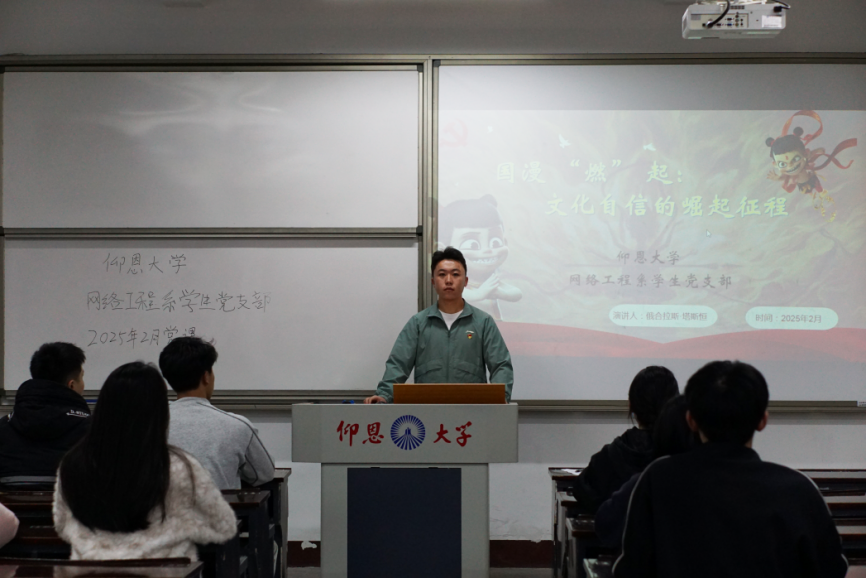 2025年2月19日,jinnianhui今年会网络工程系学生党支部,在仰恩楼A2-103开展以“国漫‘燃’起,文化自信的崛起征程”为主题的党课。