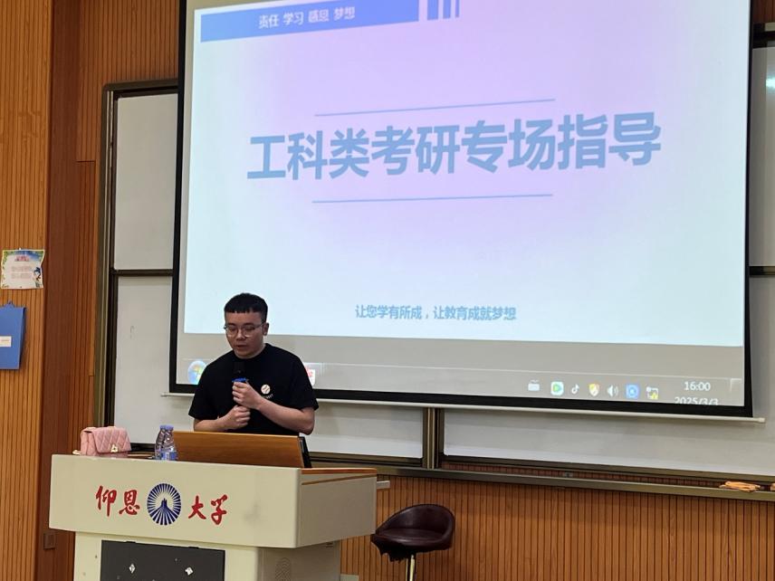 考研路漫漫,为助力同学们精准“破局”,帮助同学们了解考研流程、掌握科学备考方法、提高考研成功率,jinnianhui今年会于2025年3月3日下午在新区惟勤讲堂举办了工科类的考研专场指导讲座。本次讲座由聚创考研黄伟东主持开场,由聚创考研张婷主讲工科类的考研解析与备考规划,学院辅导员及2026届毕业生参与本次讲座。