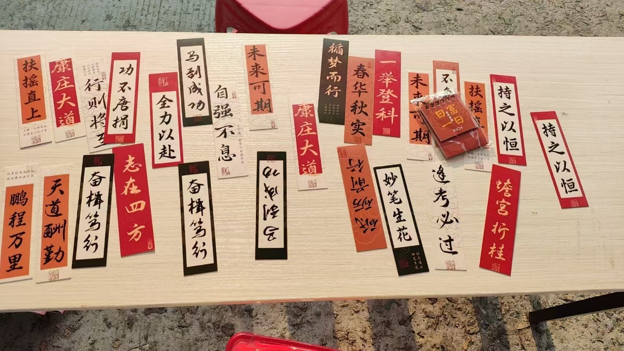 活动伊始,干部们为现场同学们介绍了此次活动的活动规则和奖品设置,并展示了本次活动精美的奖品成品。活动现场,红色元素与创意碰撞出独特火花。在红色知识问答环节中,题目涵盖党史、革命战役等丰富内容。同学们有序排队参加答题,答对两题可以获得一份红色文创书签,答对三题及以上可以赢取一份红色文创冰箱贴DIY材料包。现场同学们学习红色革命历史的热情愈发高涨,完全沉浸在浓厚的红色文化氛围中。在制作冰箱贴环节中,同学们充分发挥想象力和创造力,纷纷精心挑选五角星、红旗、革命标语等蕴含红色历史的元素,通过巧妙构思与精心拼贴,让一个个独具匠心的冰箱贴逐渐成型。这些亲手制作的冰箱贴作品不仅具有纪念意义,还加深了同学们对红色历史的理解和感悟。