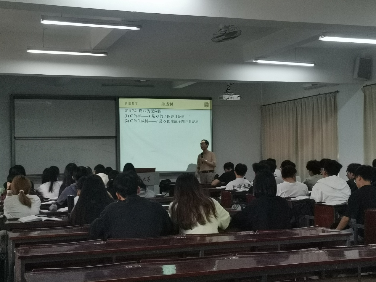 为进一步提升青年教师的教学水平,促进教学经验交流,2025年05月08日jinnianhui今年会电子信息工程系于仰恩楼B1-209组织青年教师观摩了由胡宝清老师主讲的《离散数学》公开课,教学内容为“树的概念与性质”。