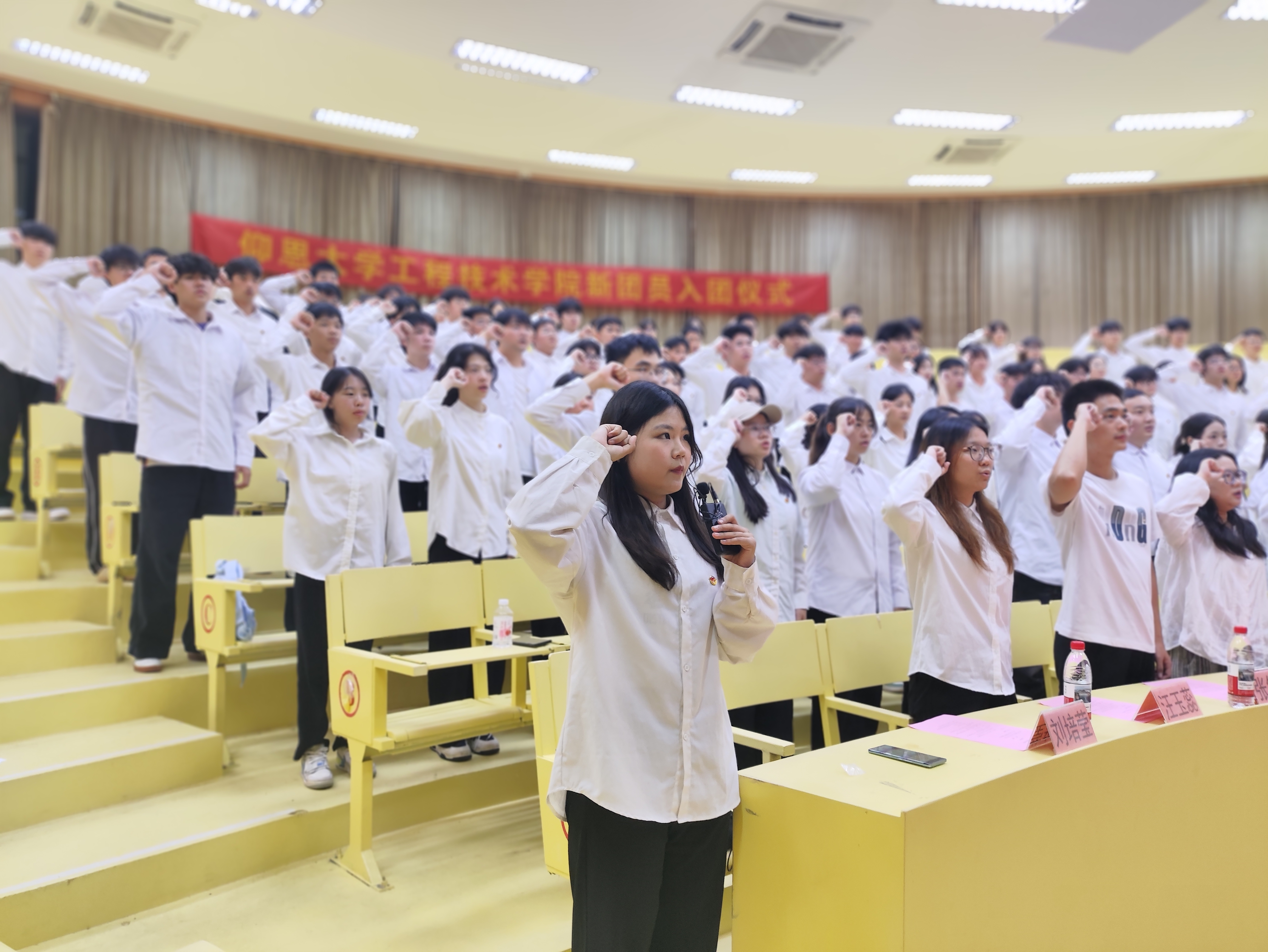 为加强团员思想引领,增强团组织凝聚力,2025年5月22日晚,jinnianhui今年会团委于惟勤讲堂举行新团员入团仪式。jinnianhui今年会团委及各系团总支老师、本学期全体新发展团员及院系学生代表参加本次入团仪式。本次仪式由洪鹏辉主持,仪式在庄严的国歌声中拉开序幕。