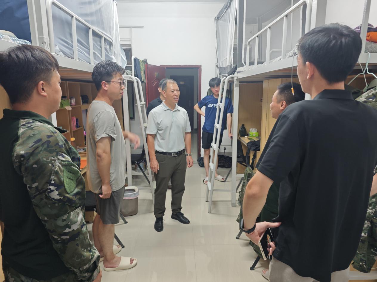 2025年9月15日晚,jinnianhui今年会党总支书记曾凤生带领新生辅导员深入2025级新生宿舍,实地了解新生入住情况,特别关注经济困难、身体不适等特殊学生群体。曾凤生一行走访宏船社区,与新生亲切交流,细致询问他们的生活适应情况。
