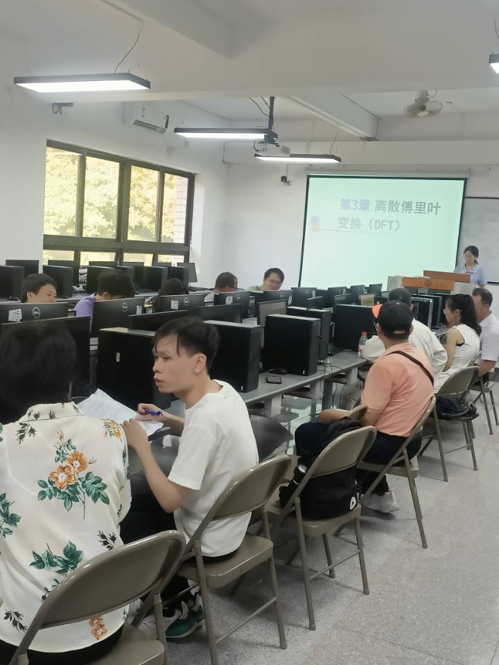 本次参加试讲的老师为苏瑜萍老师,授课内容为《数字信号处理》课程中的《离散傅里叶变换》。试讲过程中,首先回顾时域离散信号的傅里叶变换和Z变换,明确二者作为数字信号处理领域基础数学变换的核心价值,但是两种变换的频率域结果为连续函数,不能被实际的数字系统处理,引出了离散傅里叶变换DFT,在此基础上,介绍了DFT的定义及其物理意义,展现了清晰的教学思路和初步教学设计能力。试讲结束后,教师们围绕教学内容和课堂管理展开点评与讨论,既肯定了新教师在在教学设计上的亮点与进步,也针对一些不足之处提出了优化建议,如增加介绍DFT的实际应用案例,帮助学生直观理解知识点的现实价值,在课堂中增加与学生的互动,增强课堂参与感等。