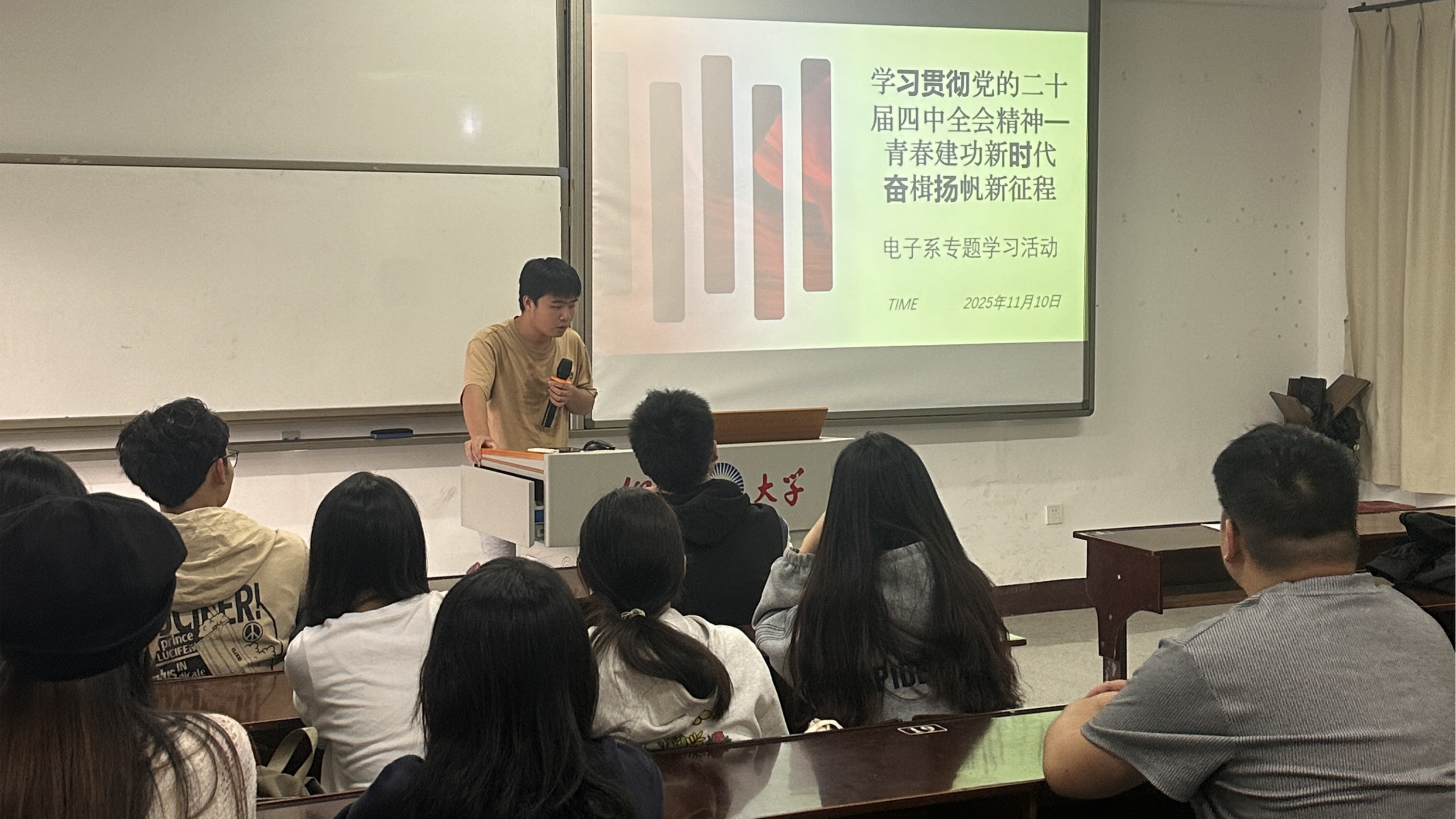 为深入学习贯彻党的二十届四中全会精神,切实把思想和行动统一到全会部署上来,2025年11月11日,今年会统筹组织各系团总支开展了系列专题学习活动。本次活动以提升青年学生政治素养为核心,着力推动全会精神在青年群体中落地见效,为培养担当民族复兴大任的时代新人奠定坚实思想基础。