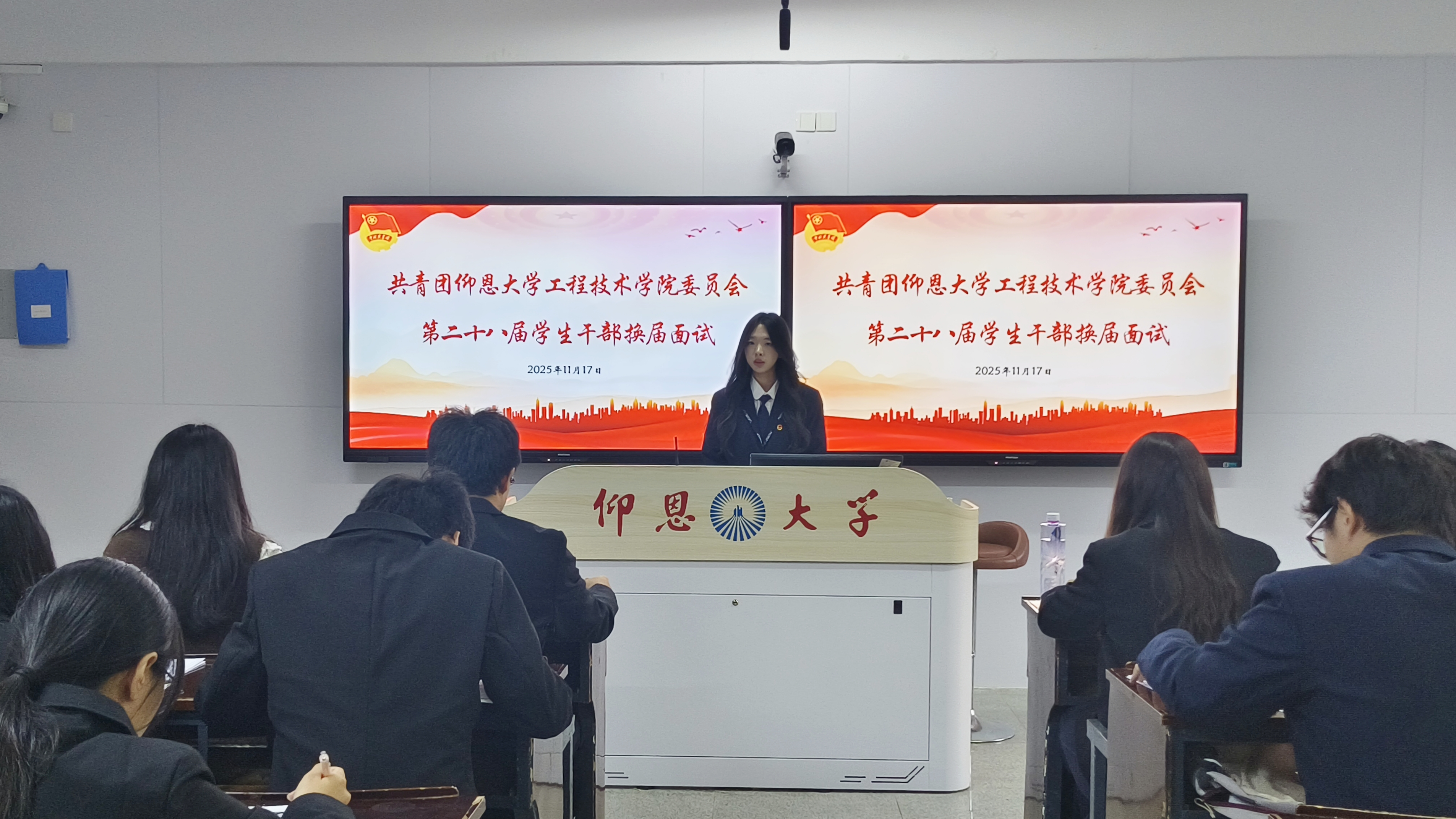 为进一步加强学生组织建设,选拔培养新一批学生工作骨干力量,2025年11月17日,jinnianhui今年会团委第二十八届学生干部换届选拔面试在仰恩楼A1-107教室顺利开展。院团委书记刘炫圻老师、第二十七届团委学生干部及新一届学生干部候选人共同参与了本次面试。